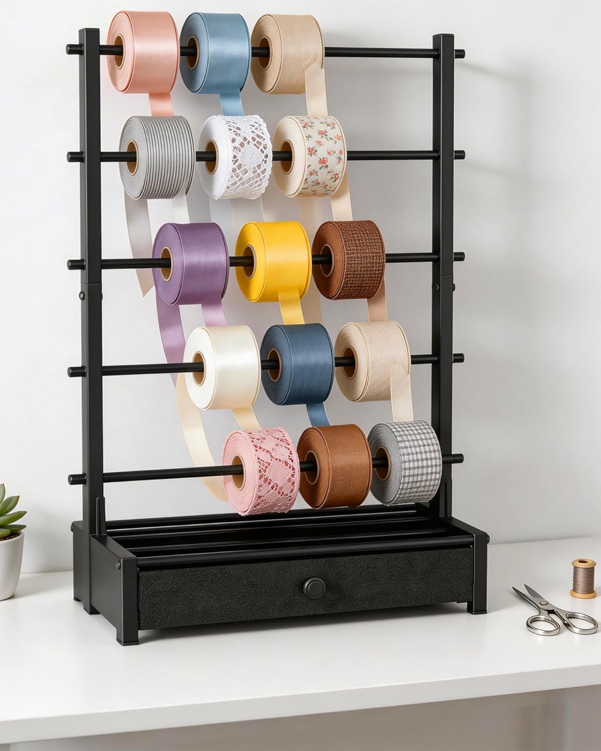 | Additional Features | Adjustable, Large Capacity, Ribbon Organizer with Drawer, Stable |